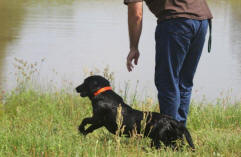 Her ability to learn is outstanding. She went from elementary to college in a matter of weeks. Gracie is easy to train and desire's to learn. Gracie will come to a smooth stop in the water on a whistle and wait until you cast her. She will watch and wait for your direction. Her love of the game drives her willingness to do well. She runs hard but has a very tender and loving side. At 14 months she won her SH title. Gracie won her HR title at Cowtown this year at 20 months old.